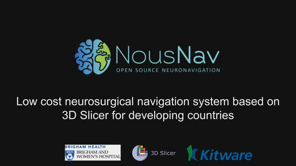 The NousNav project is an initiative led by Dr Alex Golby to develop a low-cost neuronavigation system designed for use in low- and middle-income countries. We are developing a 3D Slicer based application focused on supporting segmentation, registration and navigation tasks.